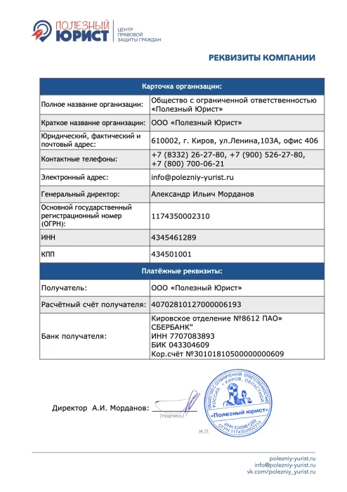 Юридический, фактический и почтовый адрес: 610002, г. Киров, ул. Ленина, 103А, офис 406